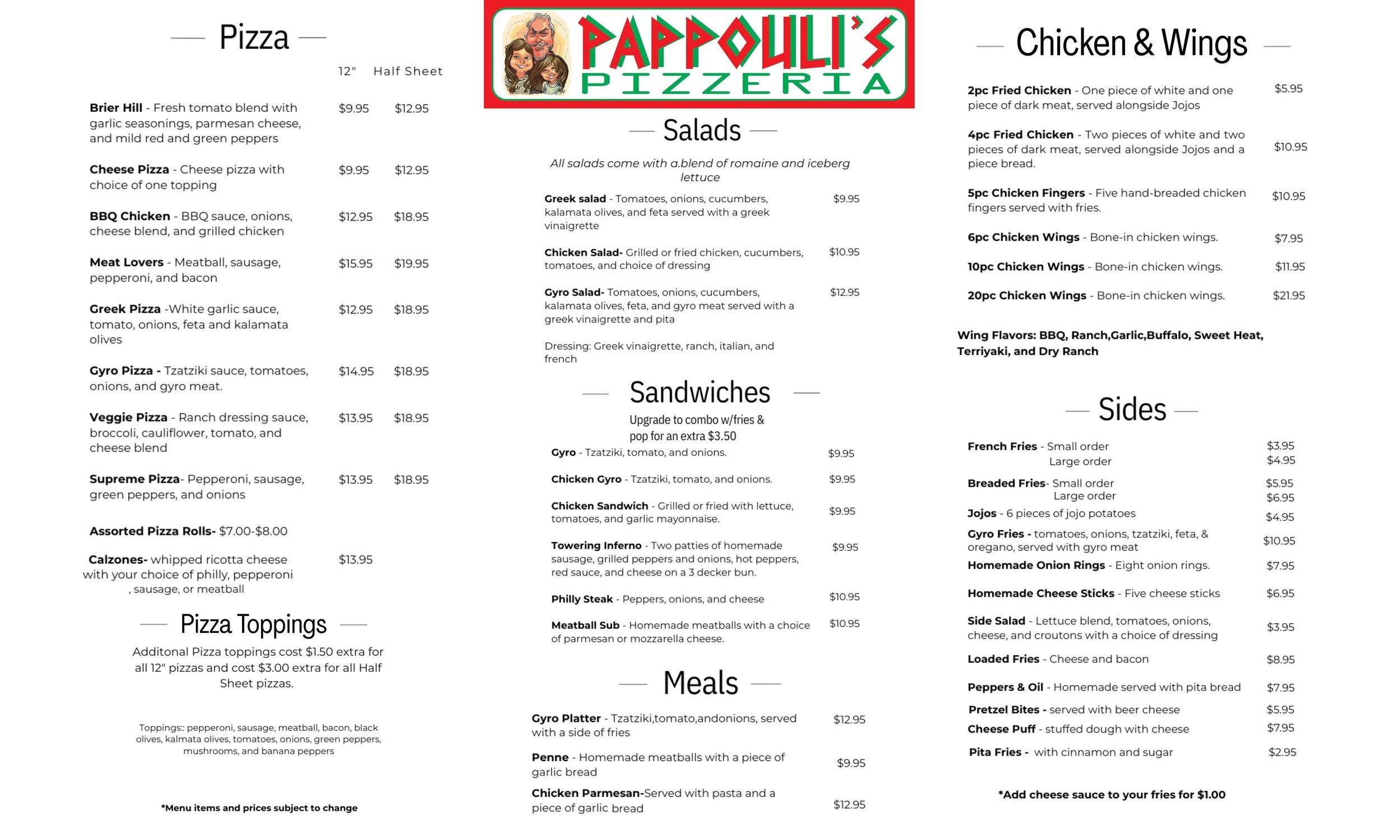 Note: This menu is view only & Prices are subject to change! Go to Order Now to order Download Our Menu! Daily Deals! Sunday:Monday: CLOSEDTuesday: CLOSEDWednesday: Thursday:Friday: Saturday: